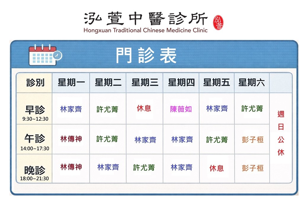 泓萱中醫診所門診表115年度